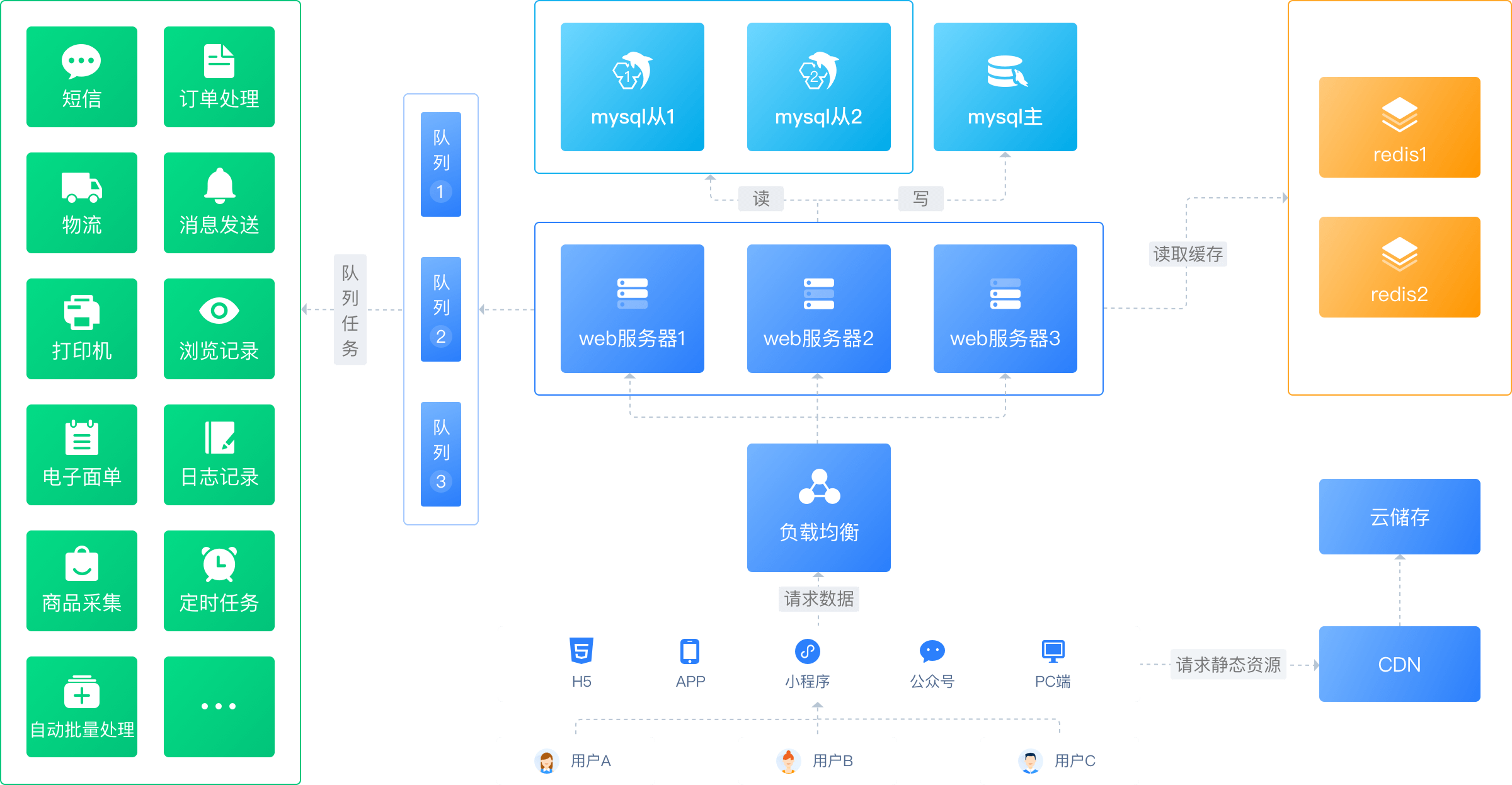 对接各主流平台接口,一键登录、支付、云存储、打印、短信和模板消息等扩展驱动统一,更易开发